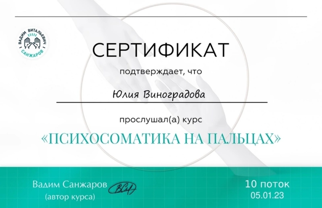 Во время сессии дам обратную связь о причинах Вашего заболевания/симптома/диагноза и направление для самостоятельной работы.