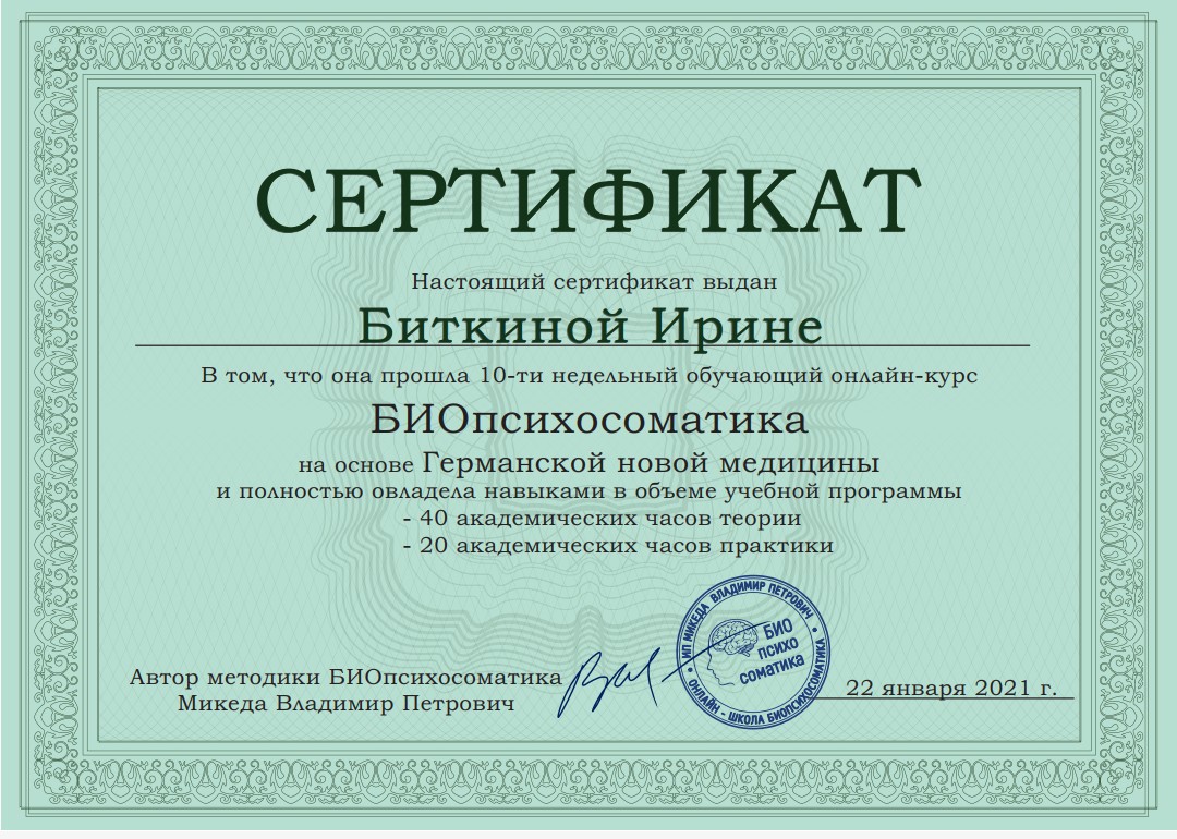 Во время консультации найду и объясню Вам причины диагноза, симптома с позиции психосоматики и ГНМ.